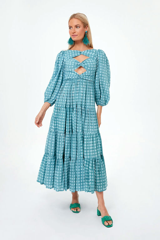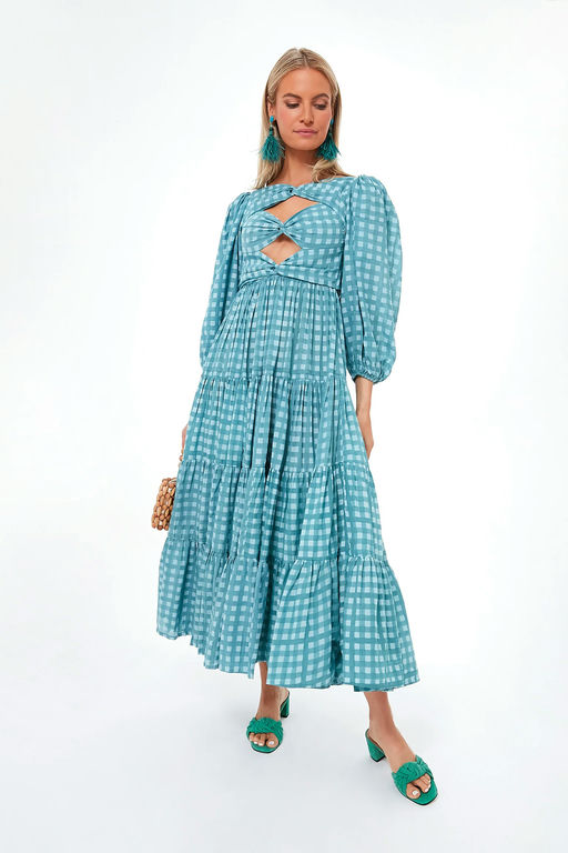 Aquifier Gingham Twist Bust Maxi Dress