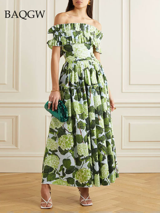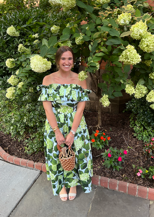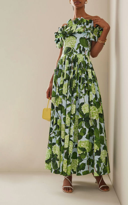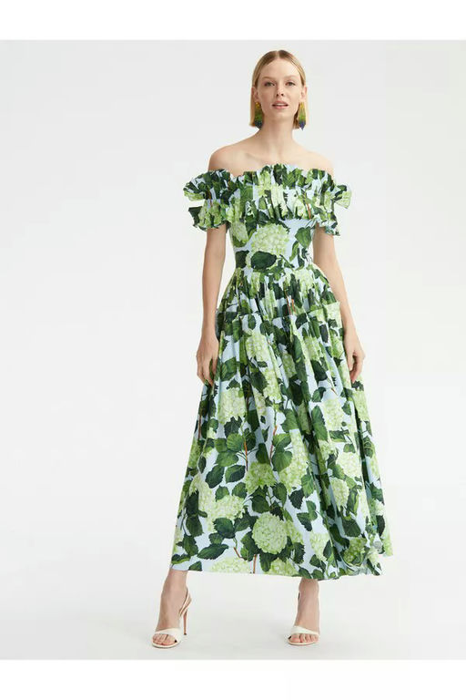 Hydrangea Poplin Off-The-Shoulder Maxi Dress